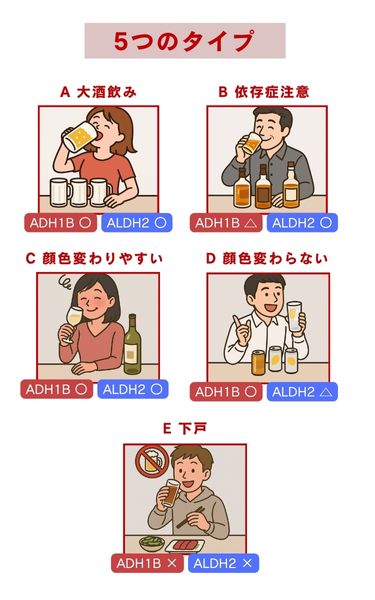 個人の「お酒に対する体質」をいくつかのタイプに分類し、具体的な説明とアドバイスを提供します。