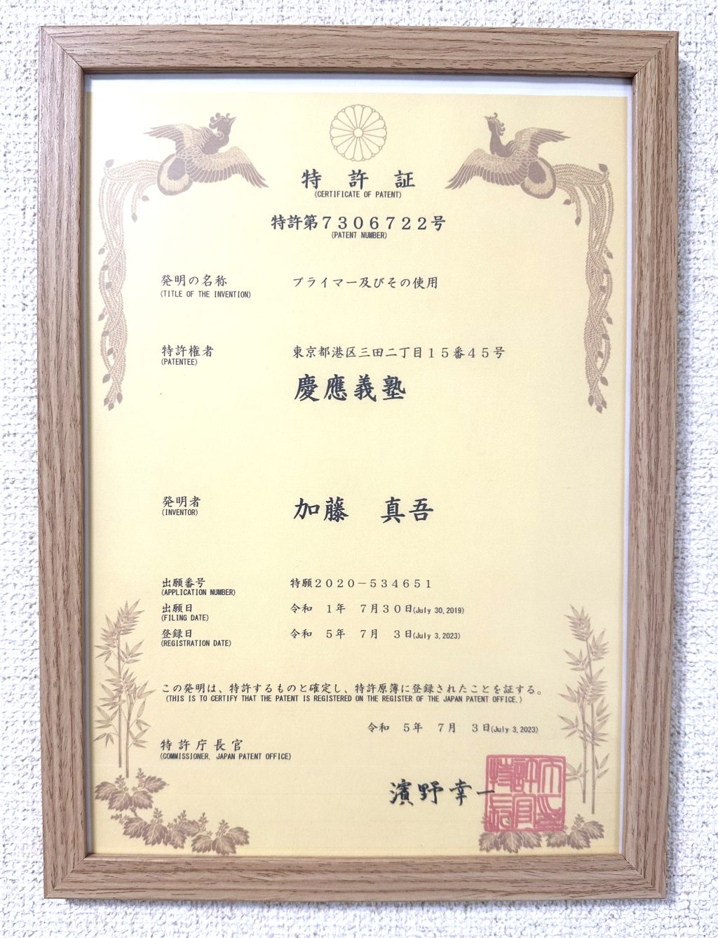 特許取得証